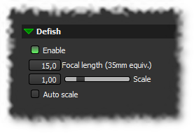 Defish is a specialised version of the Lensfun geometry conversion. It is used to “defish” images taken with a fisheye lens, i.e. straighten the bent fisheye lines which results in an image with normal rectilinear geometry.