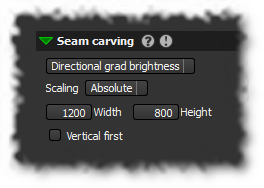 The Vertical first checkbox controls which dimension is rescaled first. Usually Photivo rescales horizontally first, then vertically. Enable Vertical first to revert this order.