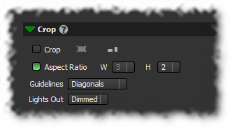 The Crop checkbox enables and disables the current crop. If no previously selected crop region is available, Photivo automatically enters cropping mode. This mode is also activated by the Make a crop button to the right of the checkbox.