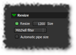 Automatic pipe size automatically matches pipe size and output resolution to avoid unnecessarily large pipe sizes and save processing time. It uses the smallest possible pipe size that is still larger than the specified output size of the resize tool.