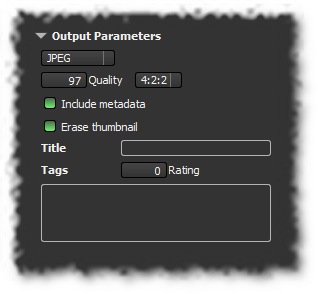 Include metadata writes the original EXIF data to the output file. Erase thumbnail discards all thumbnail images that might have been present in the the original image.