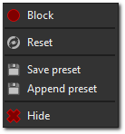 With the same context menu you can also Hide filters from the GUI. Hidden filters are also disabled, i.e. they don’t get processed even if they had active settings. Press H to see a list of all hidden tools. U unhides all tools on the current tab.
